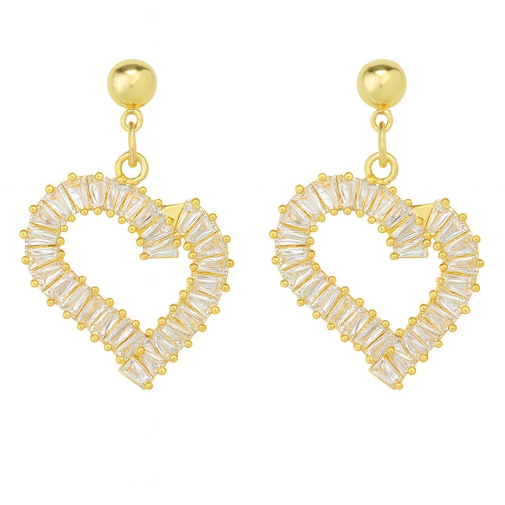 Zlaté náušnice ve tvaru srdce se zirkony S1199
