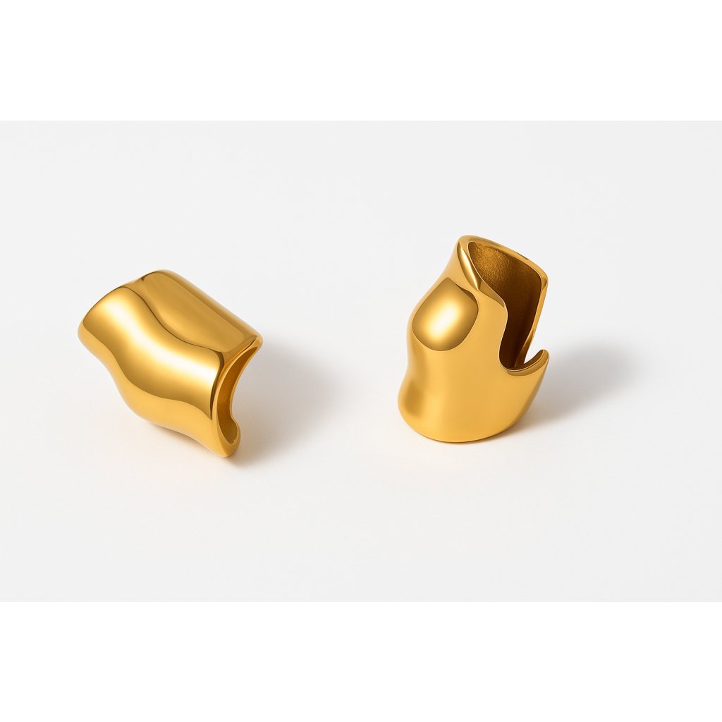 Tento moderní earcuff ve zlaté barvě přináší jedinečný a výrazný design, který zaujme na první pohled. Vyroben z odolné chirurgické oceli, díky čemuž je hypoalergenní, nerezaví a zachovává si svůj lesk i při častém nošení. Díky tvaru perfektně sedí na uchu a není potřeba žádné propíchnutí. Skvělý doplněk pro ty, kdo hledají výrazný, ale pohodlný šperk s originálním vzhledem.