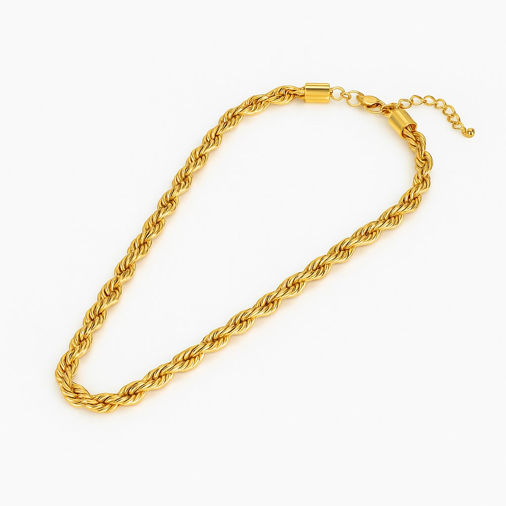 Dodejte svému vzhledu nadčasový šmrnc s tímto elegantním krouceným řetízkem ve zlatém tónu. Díky robustnímu provedení působí luxusně a zároveň zůstává dostatečně jemný pro každodenní nošení. Nastavitelná délka umožňuje přizpůsobení přesně podle vašich preferencí. Skvěle se hodí samostatně nebo v kombinaci s jinými náhrdelníky pro vrstvený look.