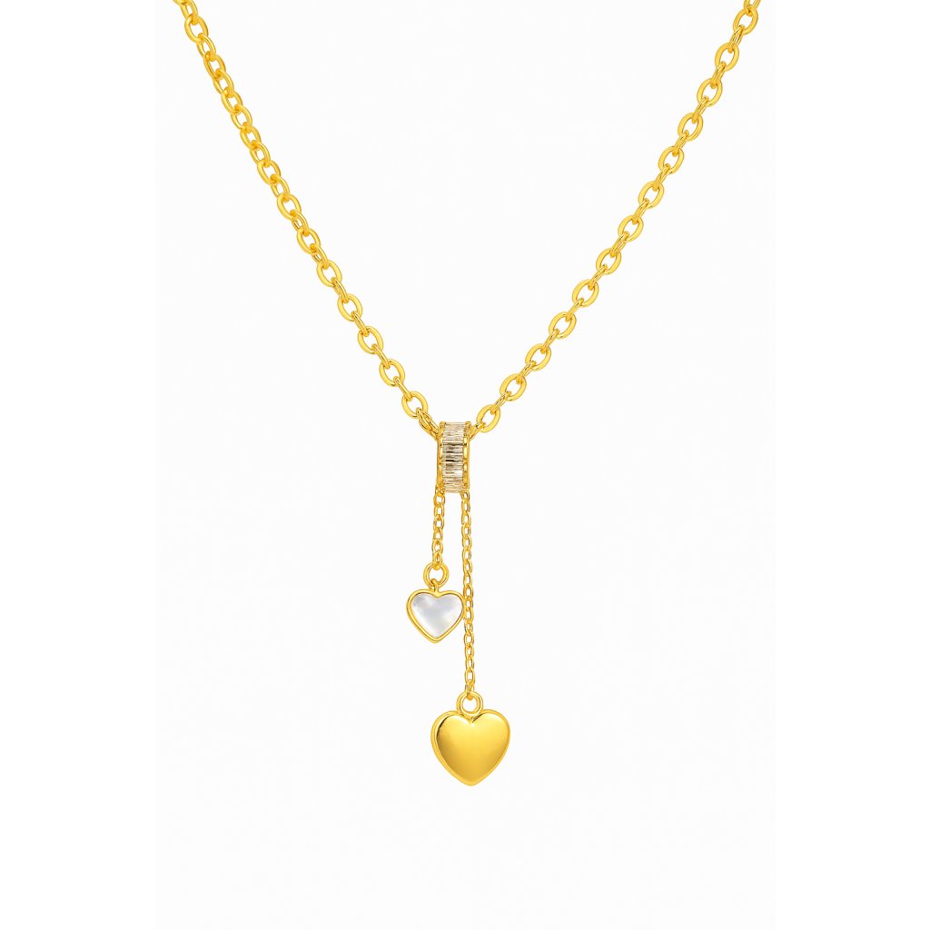 Zlatý náhrdelník se dvěma srdíčky a perleťovým detailem S1311