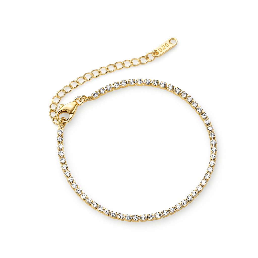 Tento nádherný tenisový náramek ve zlatém tónu je ideální volbou pro milovnice jemné elegance a nadčasového designu. Lesklé zirkony zachycují světlo při každém pohybu a vytvářejí okouzlující efekt, díky kterému se tento šperk stane vaším oblíbeným doplňkem pro každodenní nošení i slavnostní příležitosti.